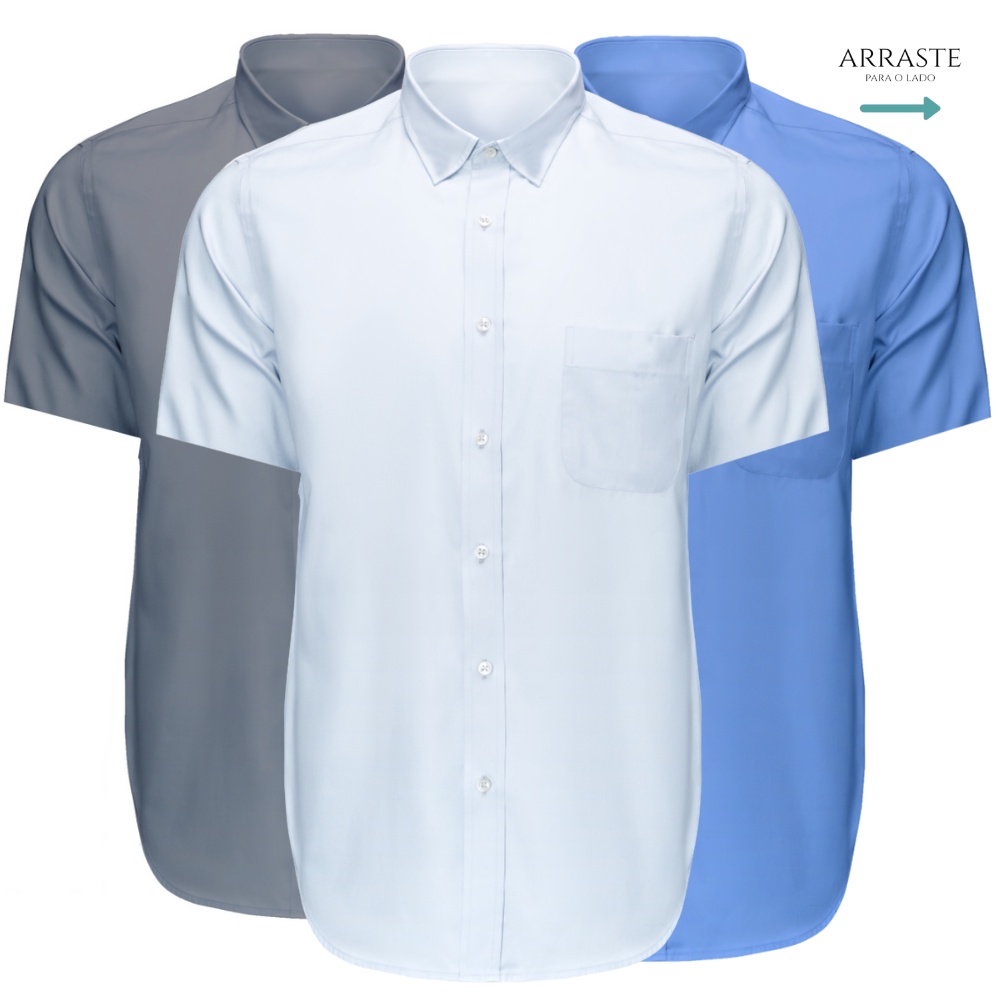 Kit 3 Camisa Social Manga Curta Microleve - Passa Fácil - Promoção