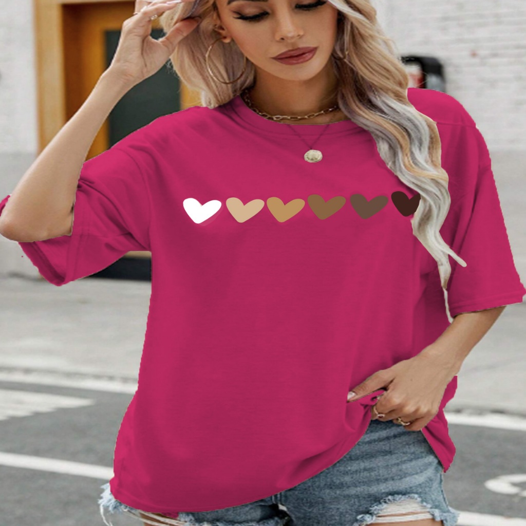 Camiseta Oversized Streetwear Feminina Manga Curta Verão Mulher Estilosa Blusa Confortável Unissex Longline Estampada Desenho Estampa Corações Romântica