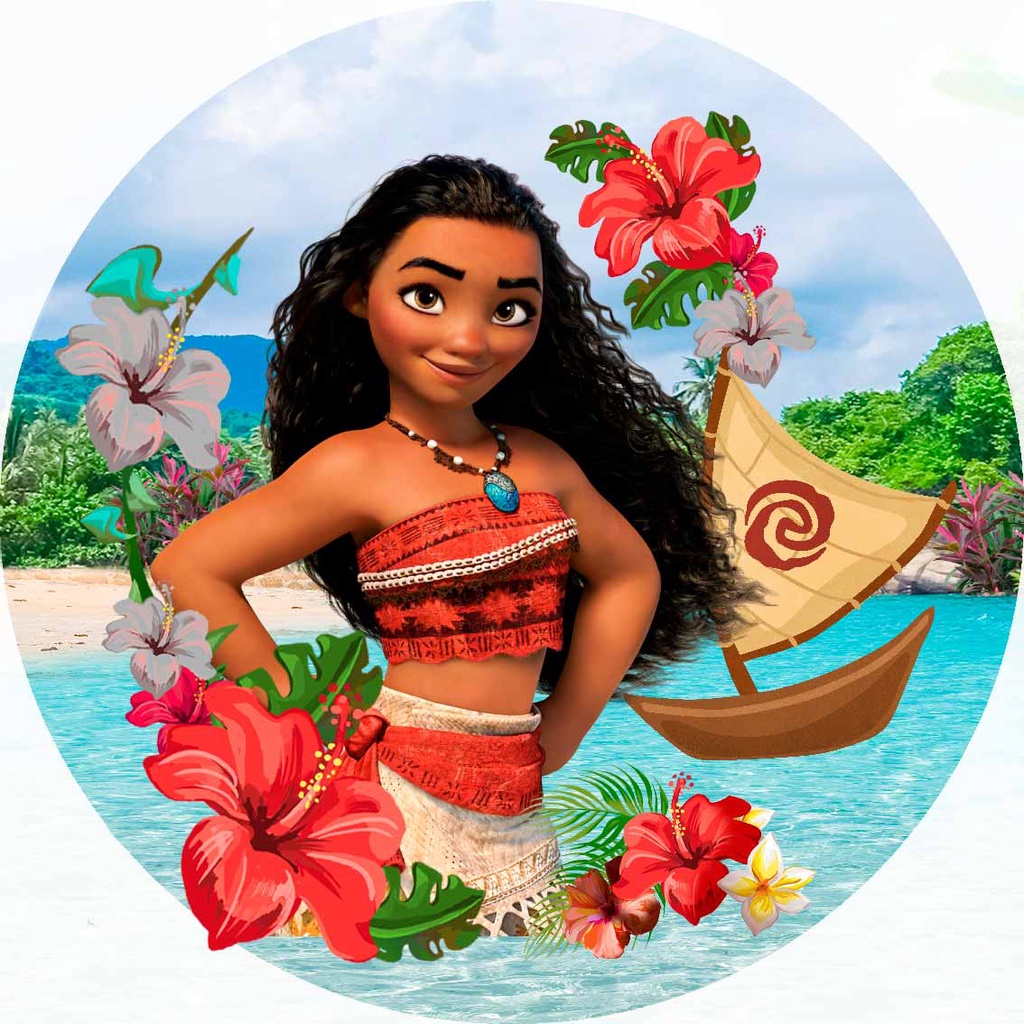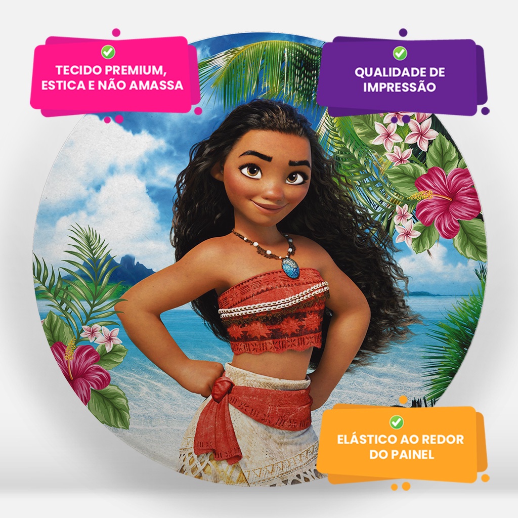 Painel De Festa Redondo Em Tecido Tema Moana C/elástico