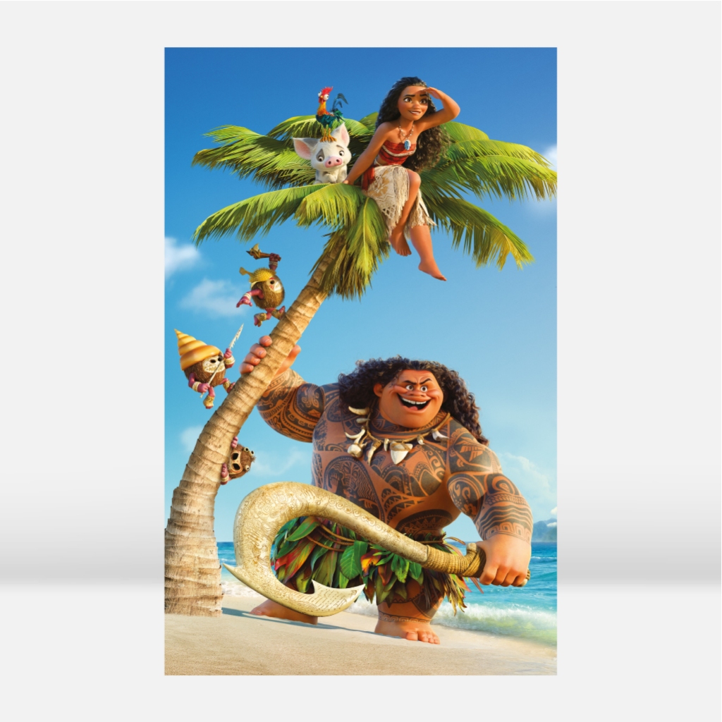 PAINEL DE FESTA TEMA MOANA ROMANO BICHINHOS - PORQUINHO MOANA - GALO MOANA - BARCO MOANA NA MEDIDA DE 2,00M DE ALTURA X 1,00M DE LARGURA EM TECIDO SUBLIMADO