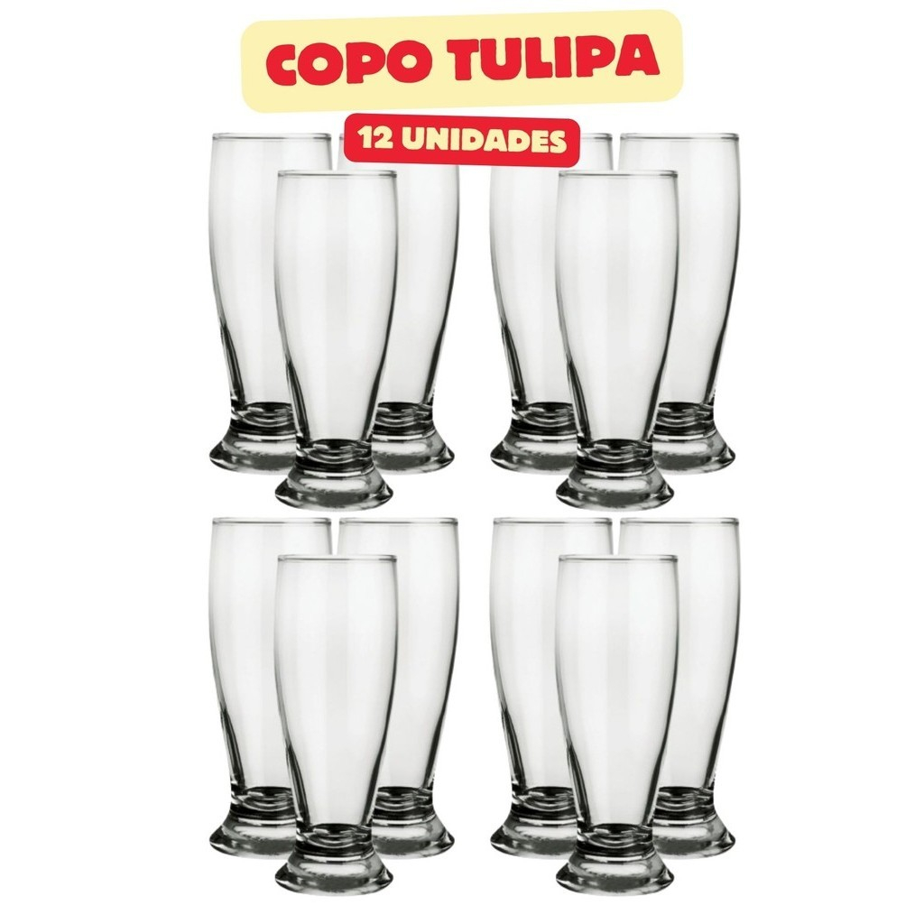 Kit Jogo 12 Copos de Vidro 350ml Tulipa Munich Copo Chopp Cerveja Tulipinhas