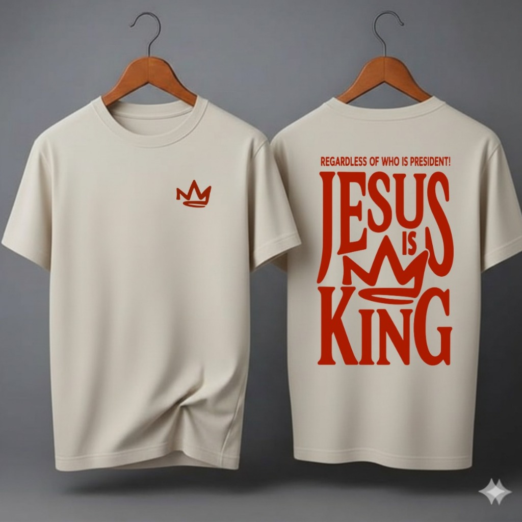 CAMISETA EVANGÉLICA JESUS IS KING REI MODA CRISTÃ ESTAMPA NAS COSTAS E FRENTE