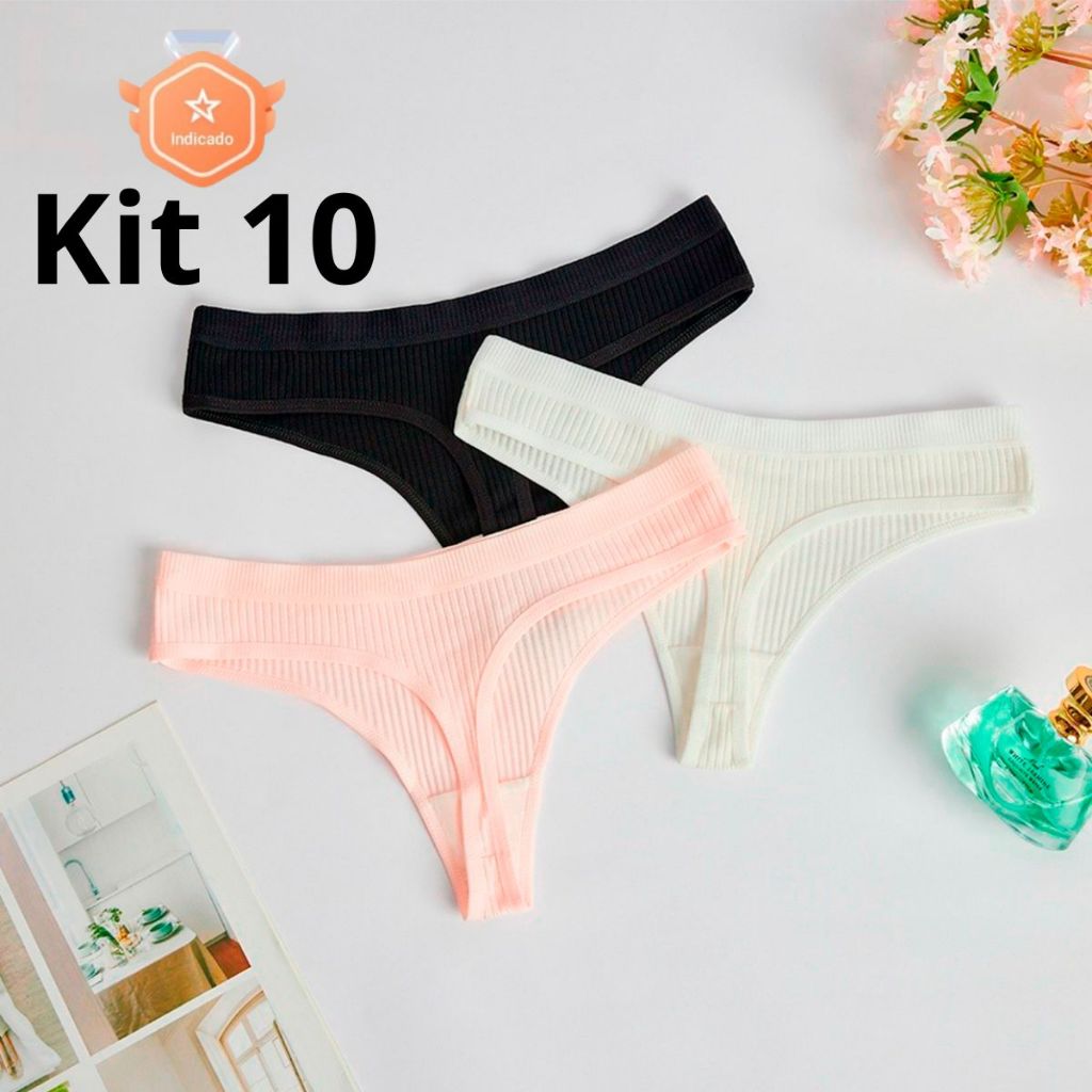 Kit 10 Calcinha Confortável Fio Dental Canelada Feminina Fio Conforto Calsinha Moda