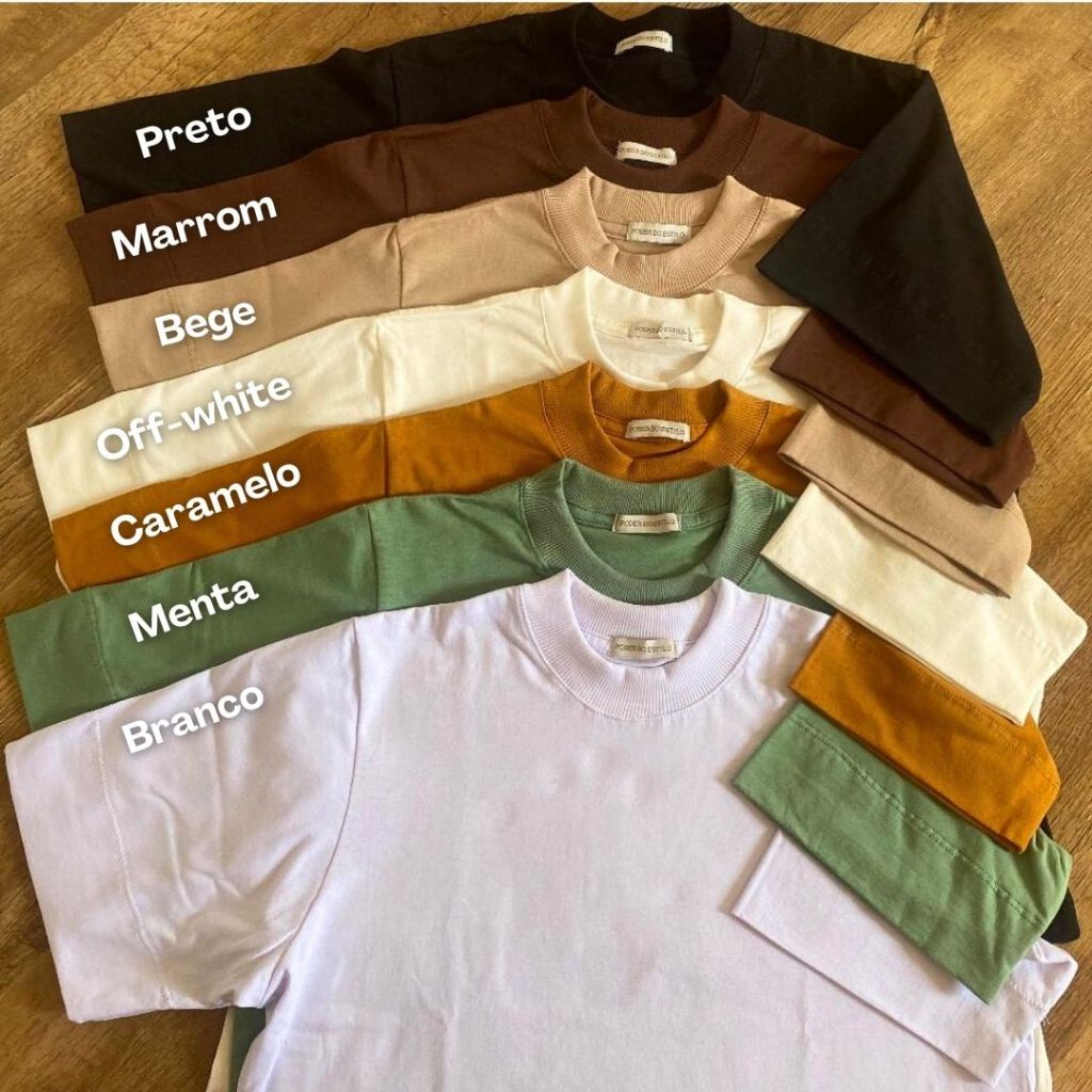 T-shirt gola alta 100% ALGODÃO Camiseta feminina básica Lisa Várias Cores Blusa feminina Manga Curta