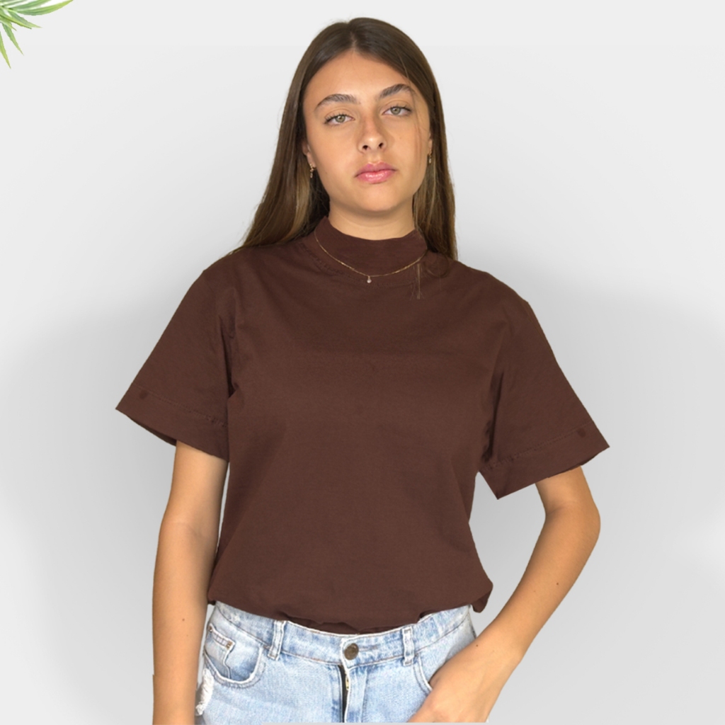 t-shirt feminina gola alta básica camiseta blusa inspiração Zara malha Menegotti 100% algodão sustentável promoção