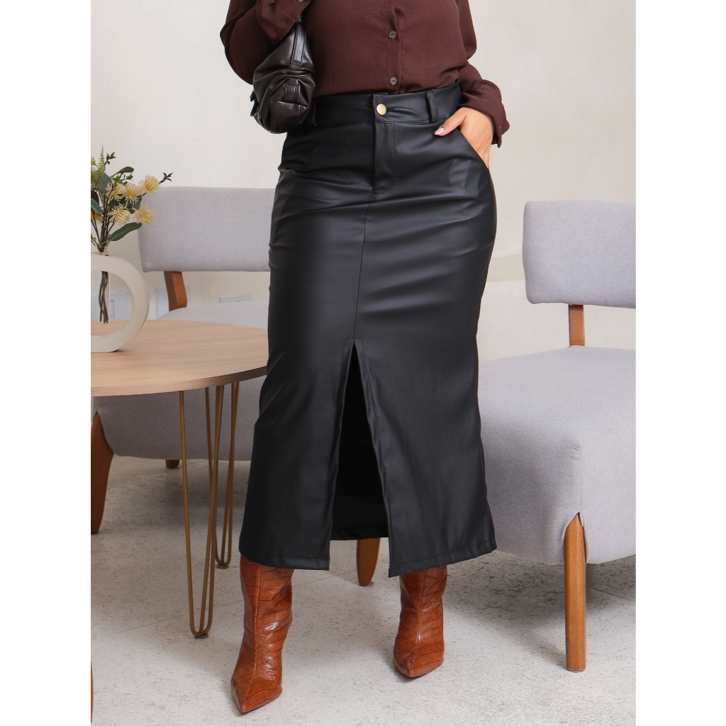 Saia Midi De Couro Fake Tendencia Feminina Tdc Modas