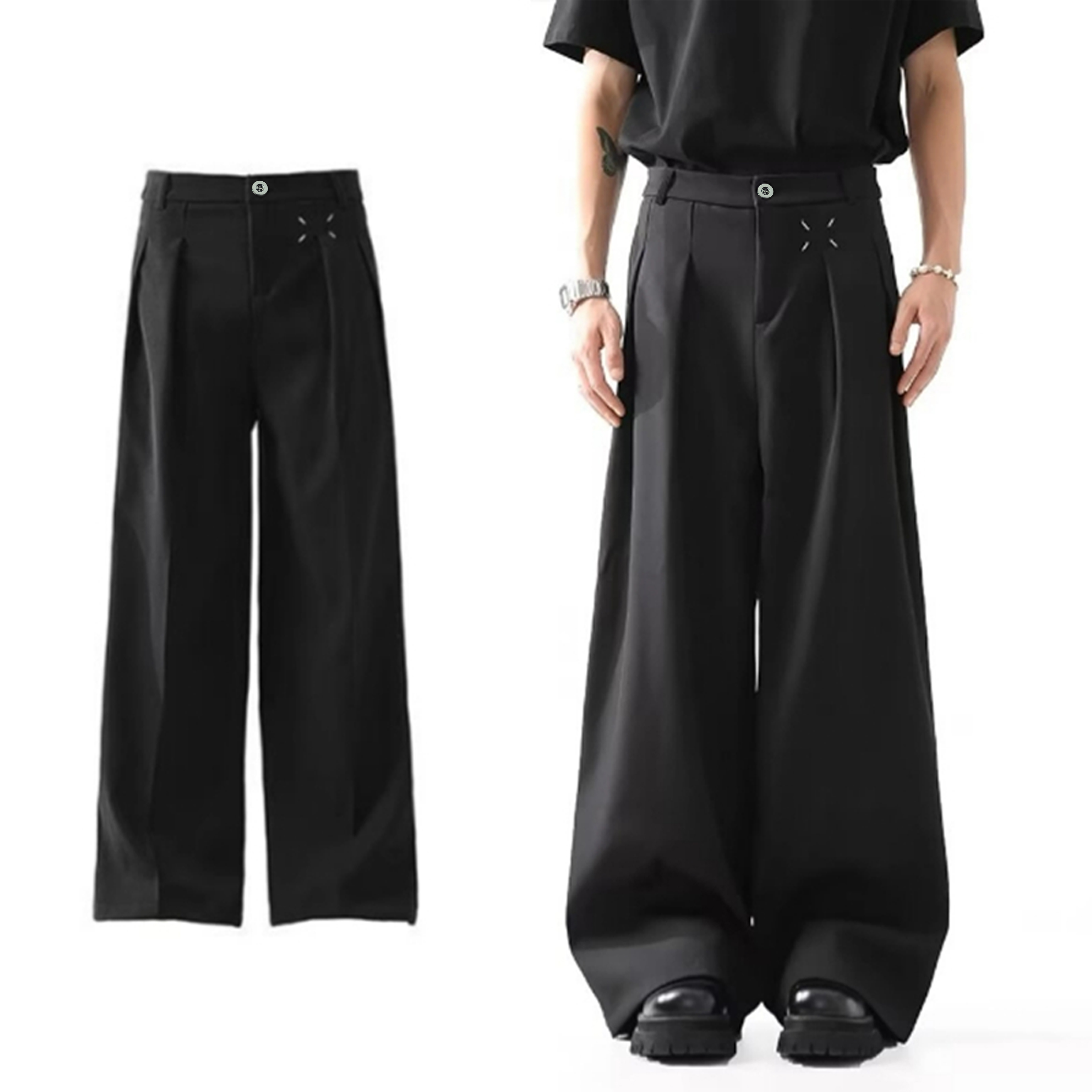 2025 Calças Masculinas Coreanas Streetwear – Silhueta Drapeada De Perna Larga Grande | Fundamentos Leves De Verão