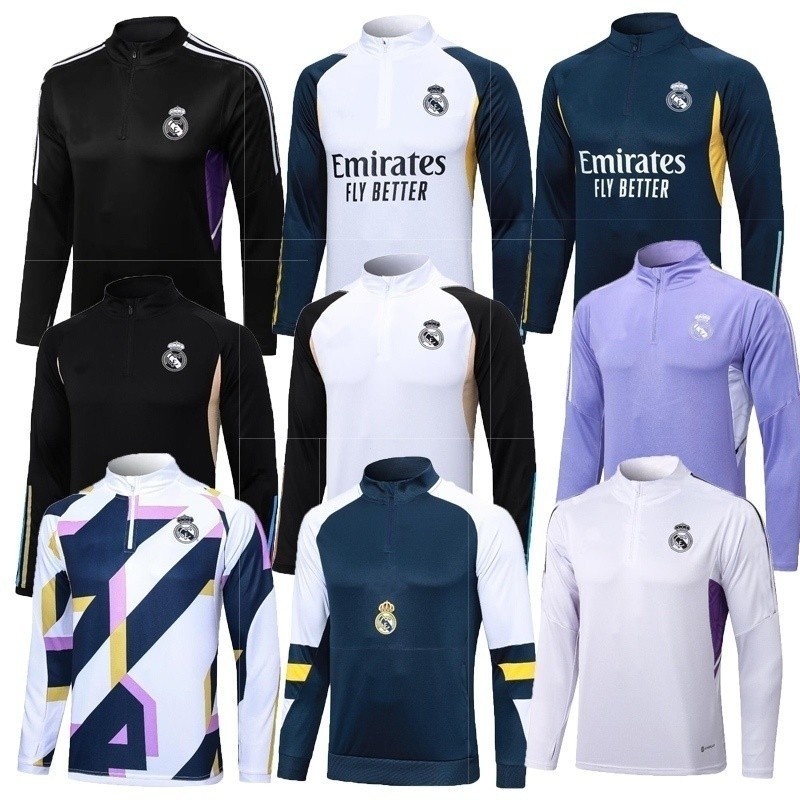 2022 2024 Real Madrid Uniforme De Treinamento De Futebol De camisa de time manga longa Comprida Com Meio Zíper