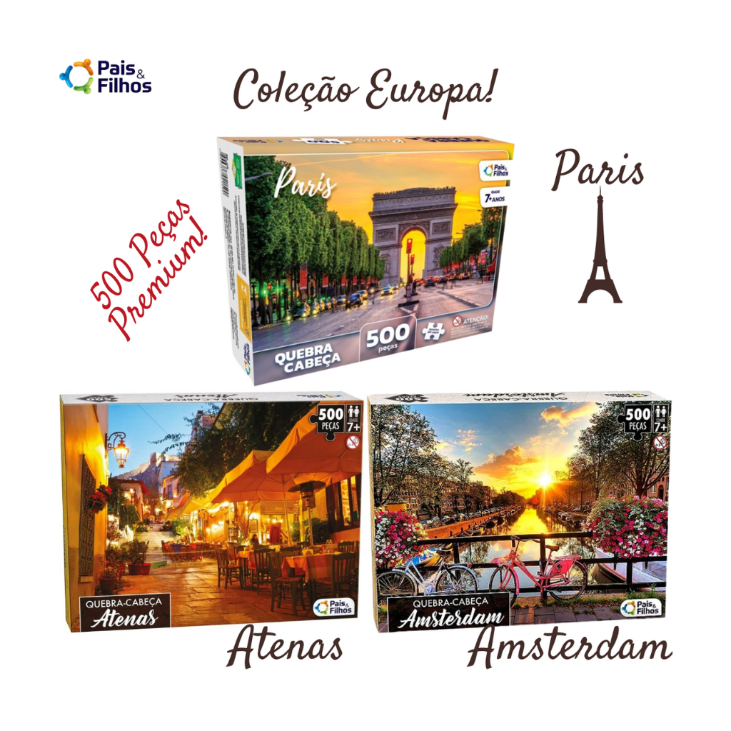 Quebra Cabeça Amsterdam -Paris -Atenas 500 Peças Puzzles Coleção /Adulto/ Criança/ Educativo Pedagógico - Pais&Filhos