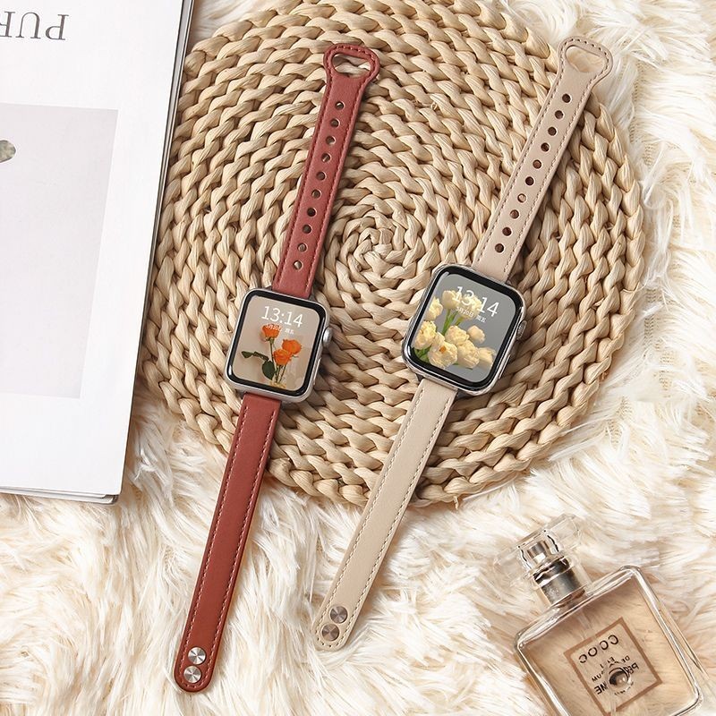 Bracelete De Couro Com Fivela Dupla Adequada Para Relógio Apple S9 8 Ultra 8 7 6 5 4 3 49MM 45MM 44MM 42MM 40MM 38MM 41MM , Alta Aparência , Cintura Pequena , Pulso De Nicho Substituível