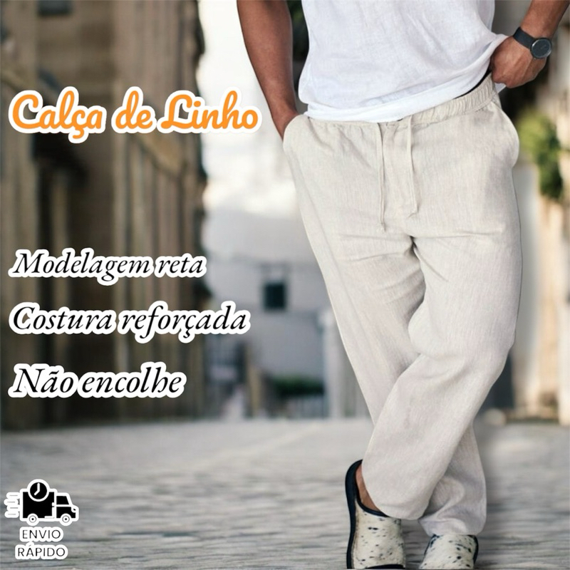 Calça de Linho Moda Masculina Feminina Verão Casual Praia Bolso Faca
