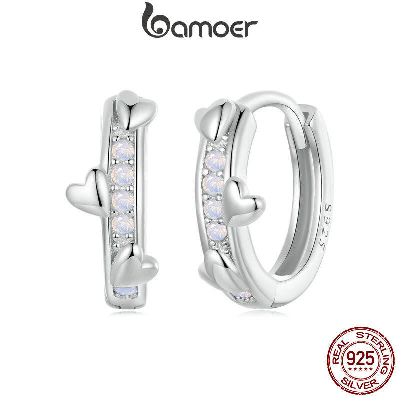 Brincos Bamoer 925 Sterling Sliver Hoop Coração Rosa Desenho De Ocasião Diária Jóias Presentes Para Mulheres