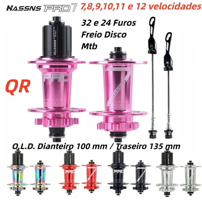 Cubo hassns pro7 mtb Cubos k7 traseiro 32 furos e 24f 135x10mm Dianteiro 100x9mm Rolamento Freio Disco 6 Parafusos
