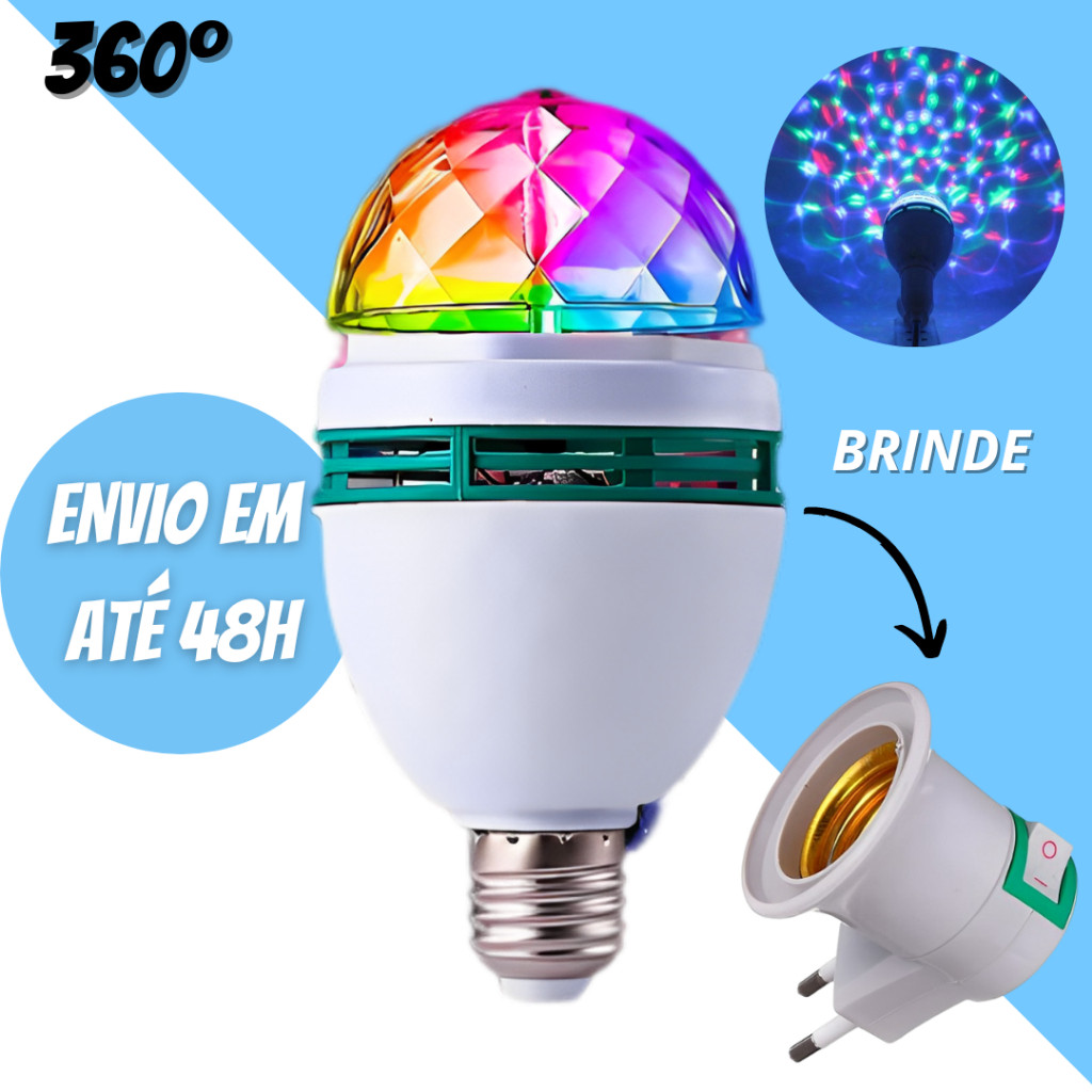 Lâmpada Led Giratória Colorida Globo De Luz Festa + Soquete SU Bucal