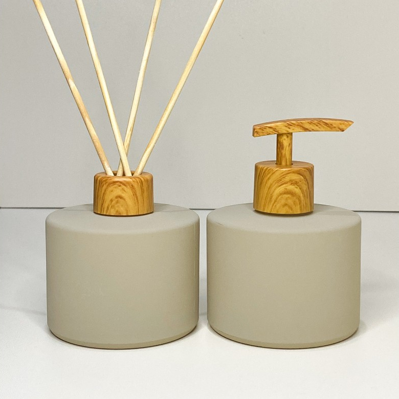 Kit Lavabo Picolo Bege Luxo Difusor Aromatizador e Porta Sabonete Líquido Cor Nude 250ml