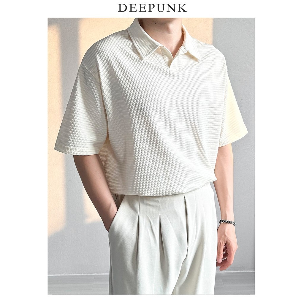 Textura da bolha masculina de verão Manga curta estilo coreano da moda Camiseta estilo Casual