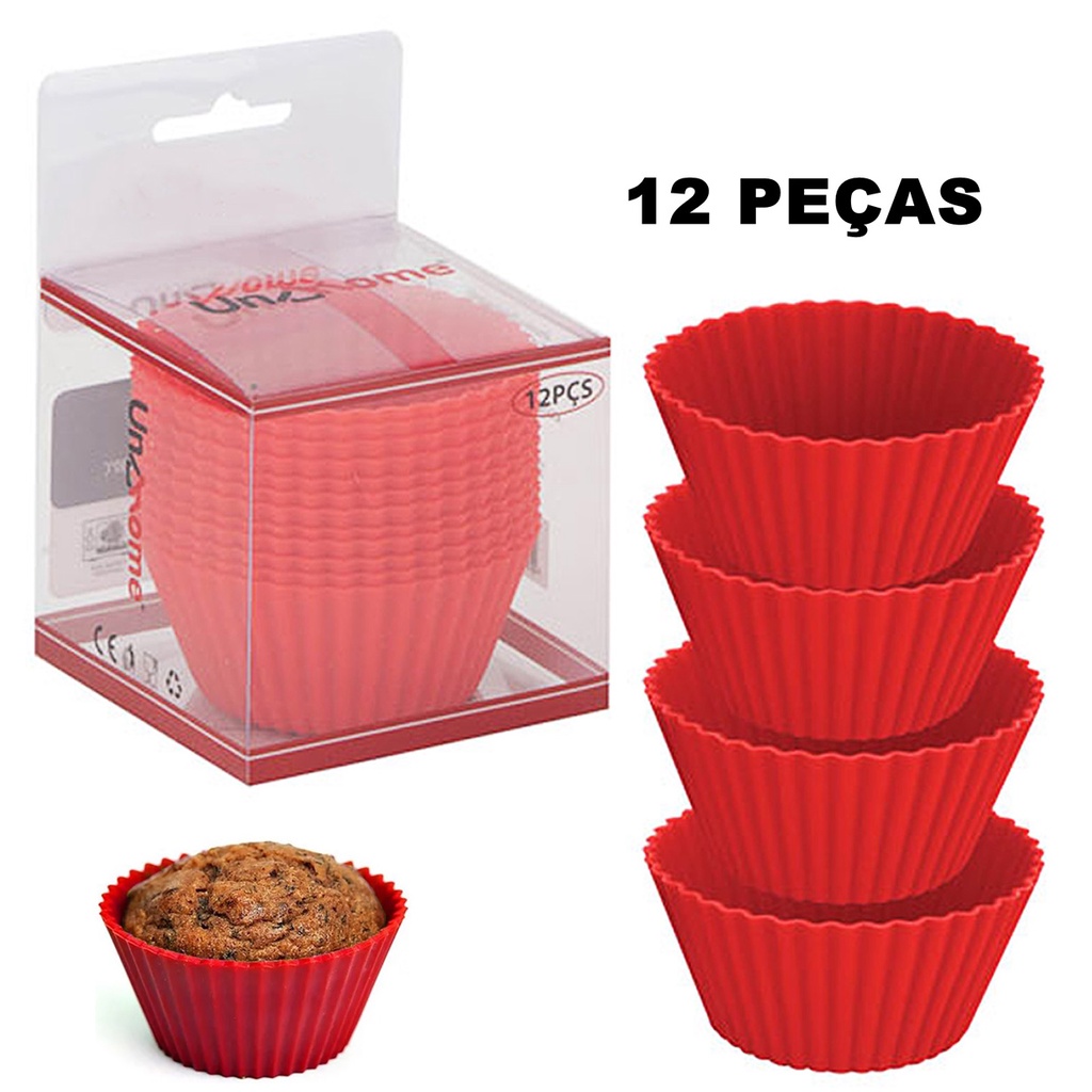 Forminha De Silicone Forma Assadeira Cupcake Mini Bolo Muffin 12 Unidades