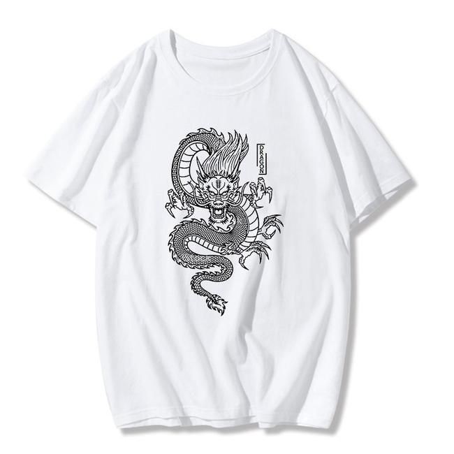 Camiseta feminina com estampa de dragão chinês Masculino Alta Qualidade