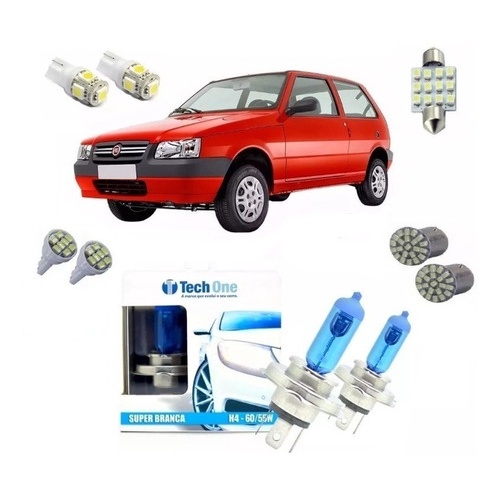 Kit Lampada Fiat Uno Mille H4 Super Led Farol Alto E Baixo + Leds