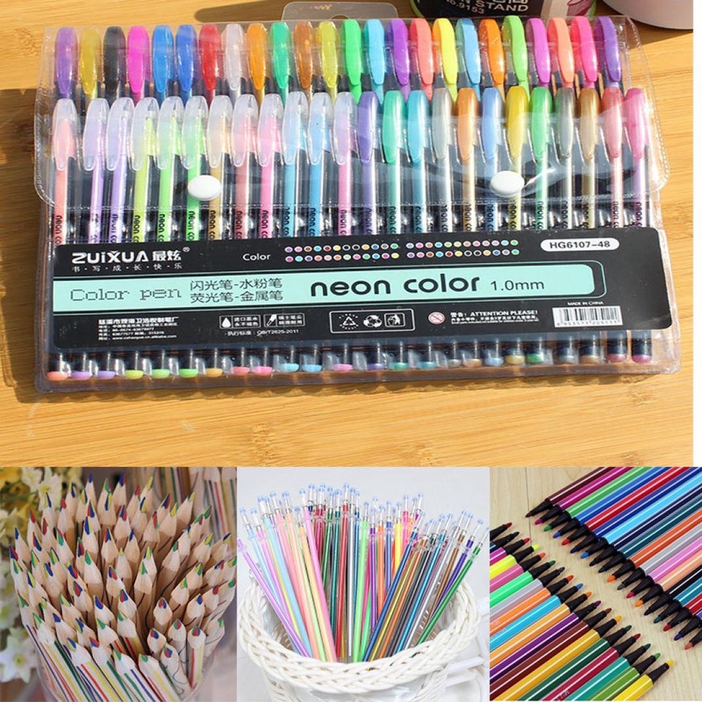 48 Pacote De Multi-Cores Caneta Esferográfica De Tinta Gel 0.8 Milímetros Fluorescente Recargas Pintura Graffiti Marcador Para Desenho Coloring Marcação DIY
