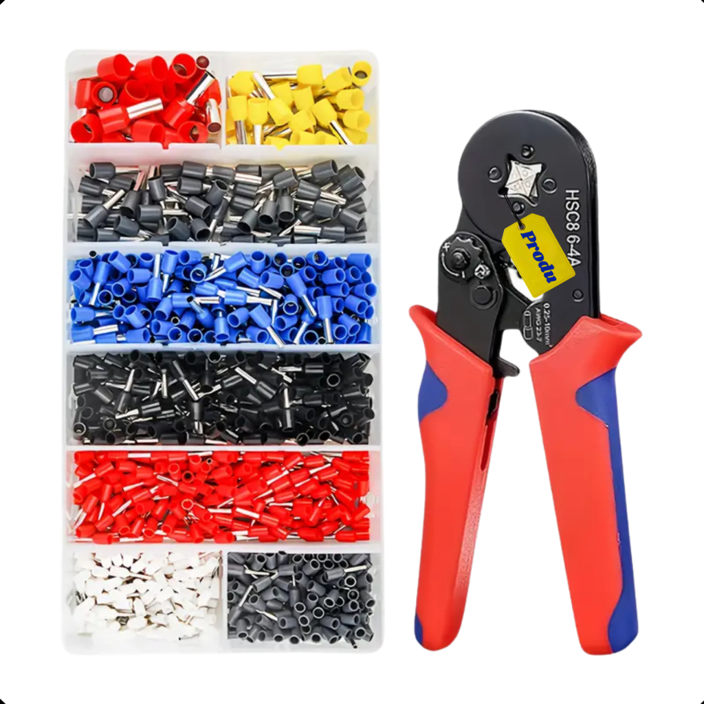 Kit Alicate Crimpador Prensa Terminal Tubular Ilhós 0.25 a 10mm² com 800 Peças Maleta