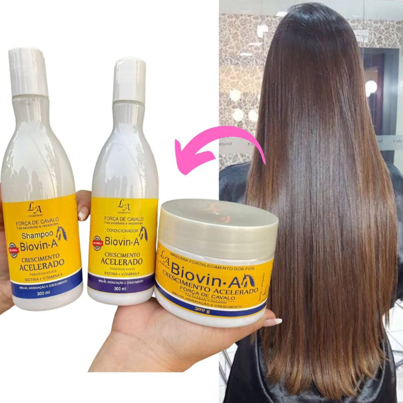 Kit Crescimento Acelerado Força de Cavalo Biovin-A Shampoo Condicionador e Máscara Hidratante para Tratamento Capilar - L&A Cosméticos Pronta Entrega
