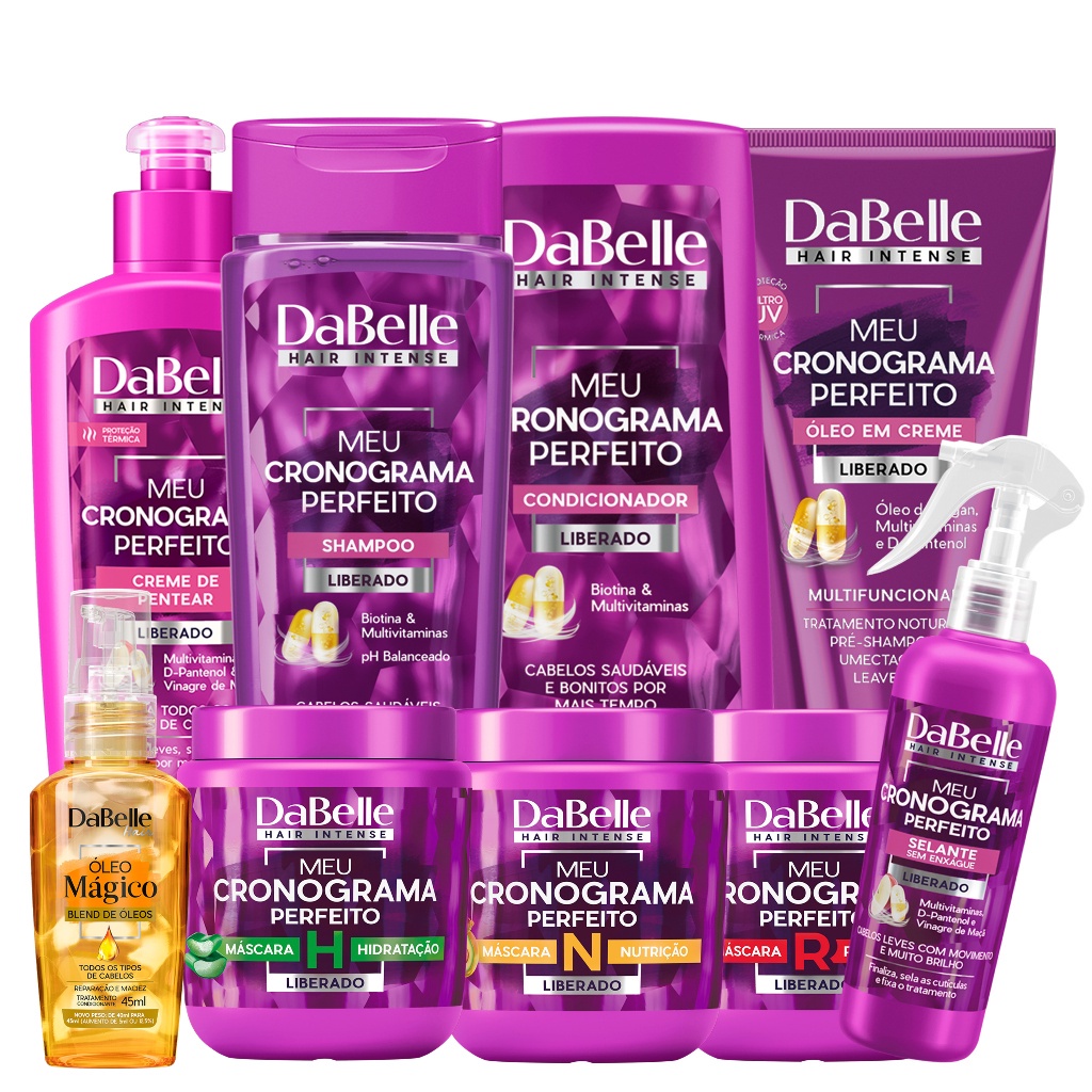 Kit Tratamento Pós Química Dabelle Meu Cronograma Perfeito Shampoo e Condicionador Máscara Nutrição Hidratação e Reconstrução e Óleo Mágico Reparador 45ml Spray Selante 200ml