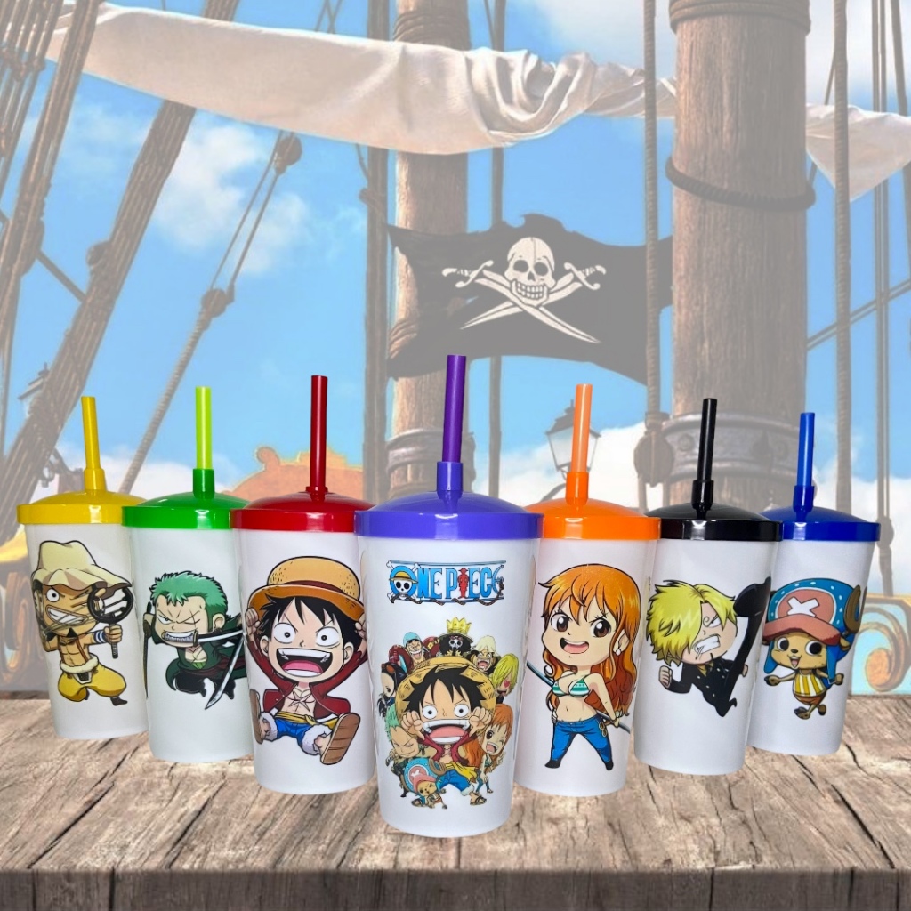 Kit 7 copos ON PIECE 500 ml com tampa e canudo - personalizado- Lembrancinhas-Decoração - Artigos para festa- festa infantil