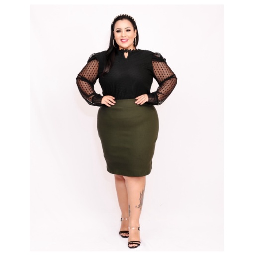 Saia Plus Size Social Secretária Evangélica Midi com Lycra