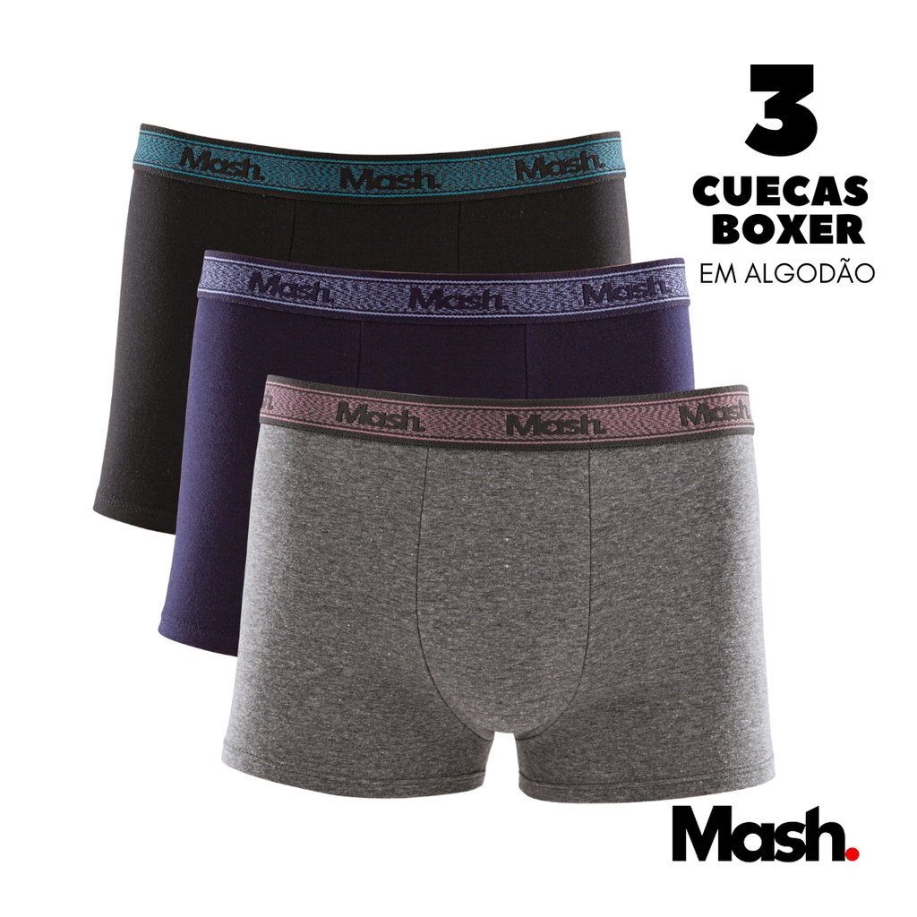 Kit 3 Cuecas Mash Box Boxer Cotton Algodão Original - Cores Sortidas
