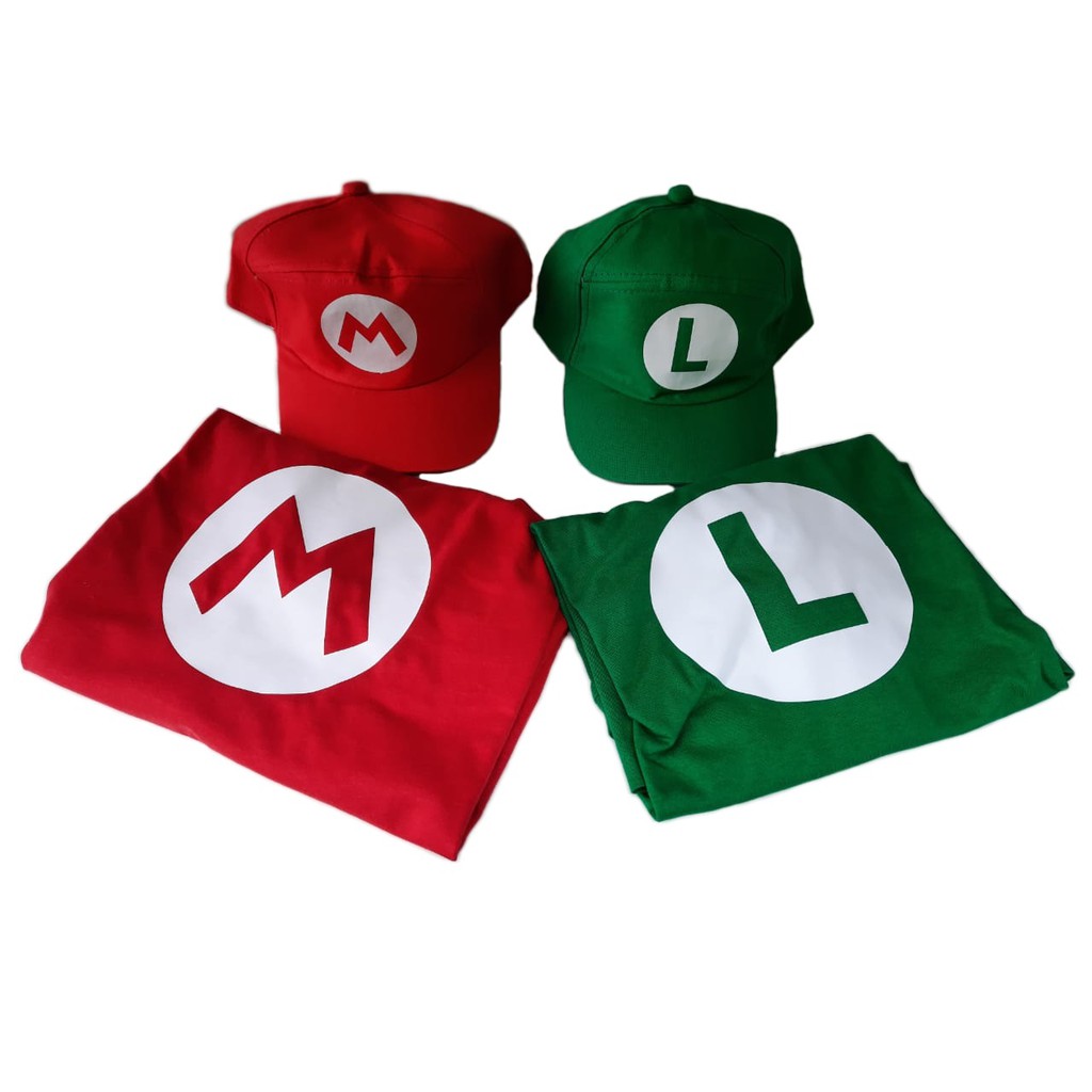 Kit Camiseta Boné Mario Bros ou Luigi 100% Algodão Adulto
