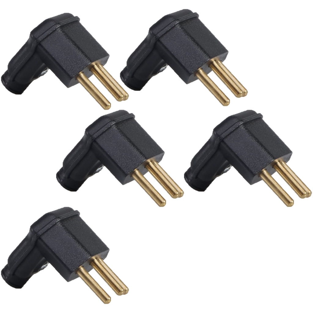 5 Plugue Pino Tomada Macho Preto 3 Pinos 90 Graus Margirius