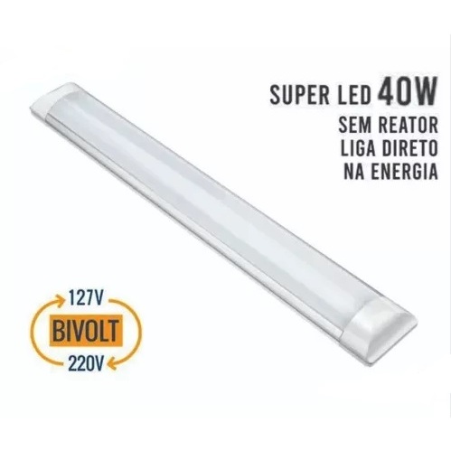 Kit 5 Luminária Led Sobrepor Slim 36W 40W 120cm Linear 6500K Branco Frio Bivolt