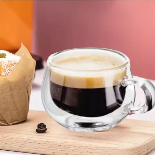 Kit 6 Copos de Vidro Duplo - 80ml copo parede dupla café chá conjunto Copo de vidro Para Café Copo Parede Dupla Sem Alça