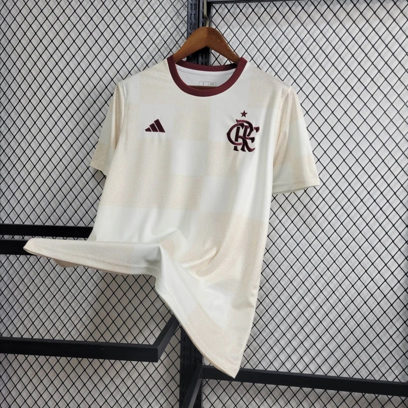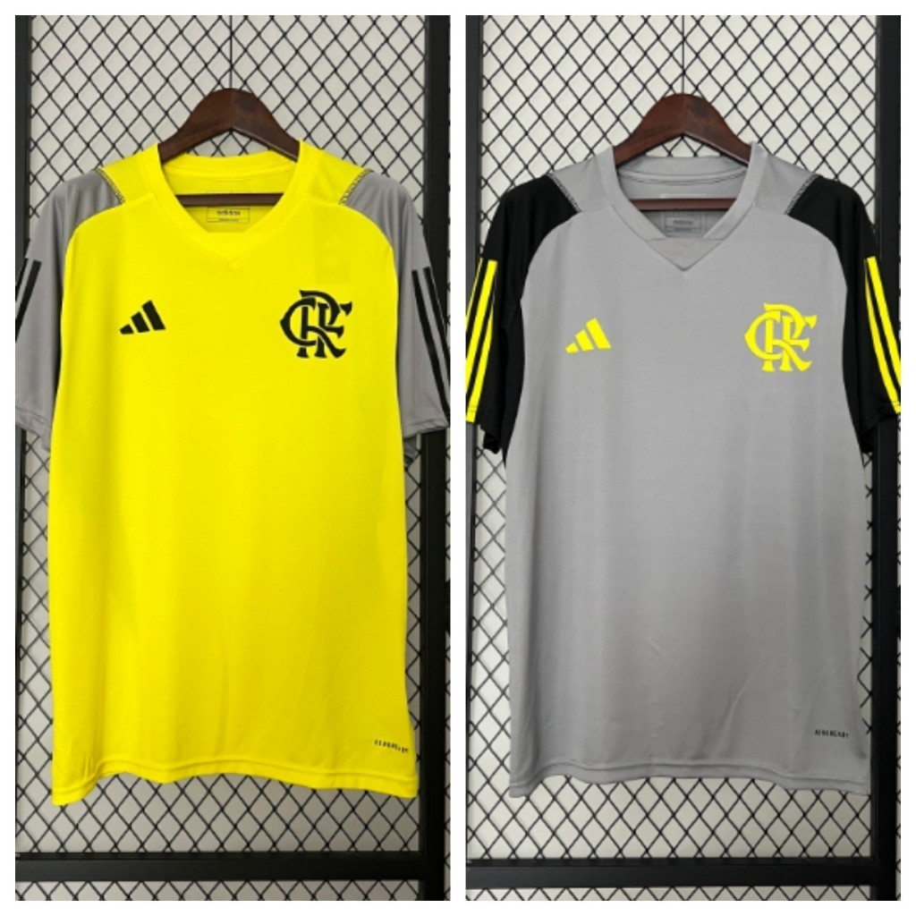 Camisa de Futebol 24 / 25 Flamengo Fato de Treinamento Flamengo Camisa de Manga Curta Cinza de Alta Qualidade para Homens