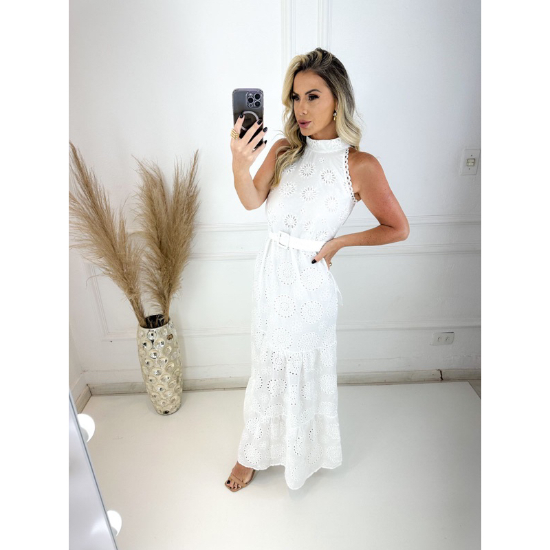 Vestido Feminino Midi Botao Plus Size Moda Evangelica Curve Tendencia Tamanho Grande Com Cinto