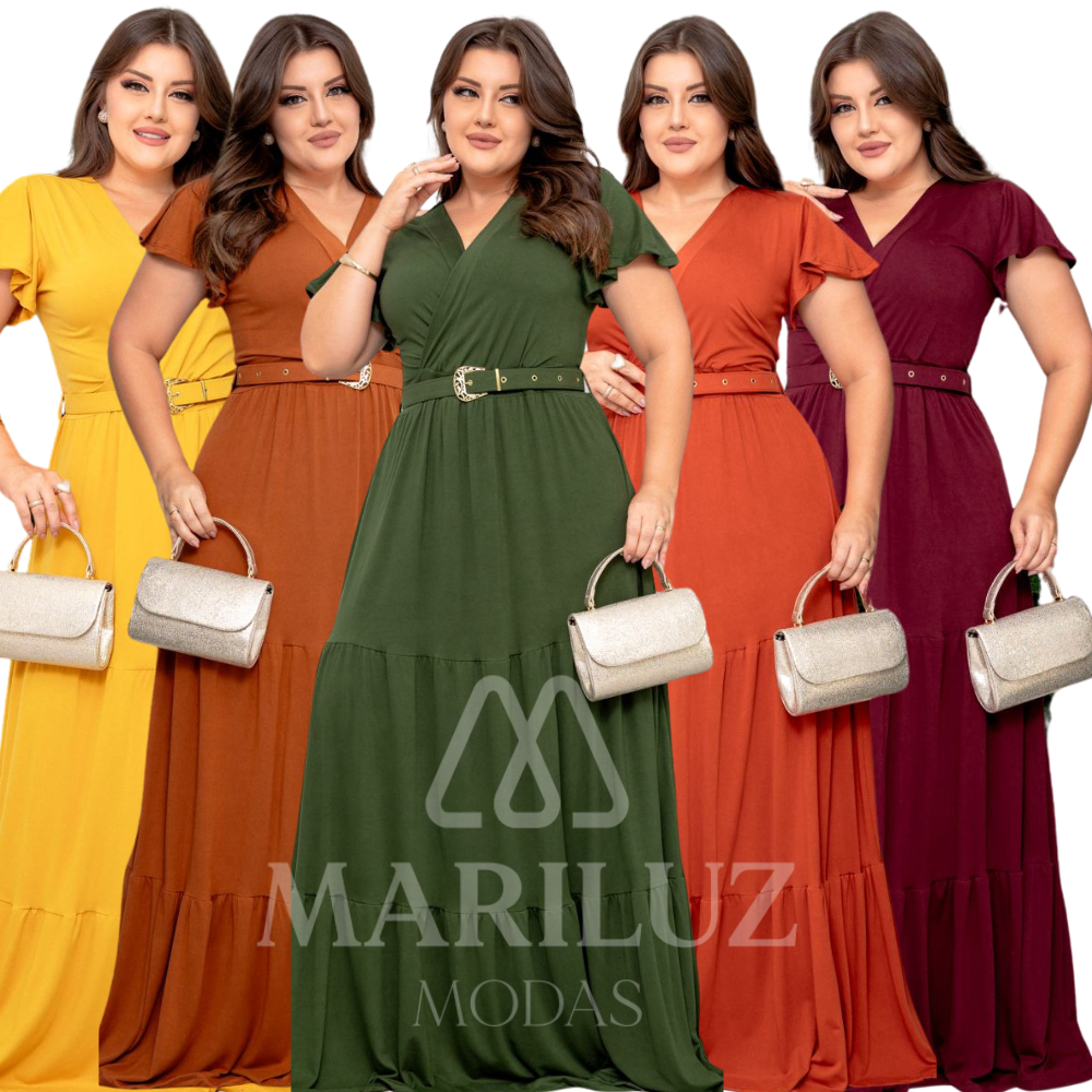 Vestido Longo Curve Manga Flare Moda Evangélica Festa Congresso Com Cinto Chique Plussize Tamanhogrande Tendencia