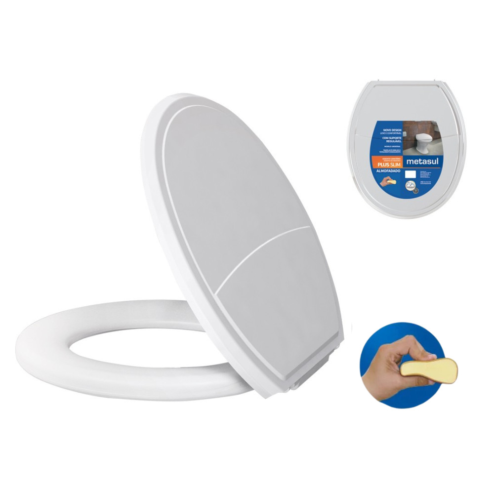 Assento Sanitário Almofadado Universal Plus Slim Oval Básico Branco Metasul Banheiro Tampa De Vaso Confortável