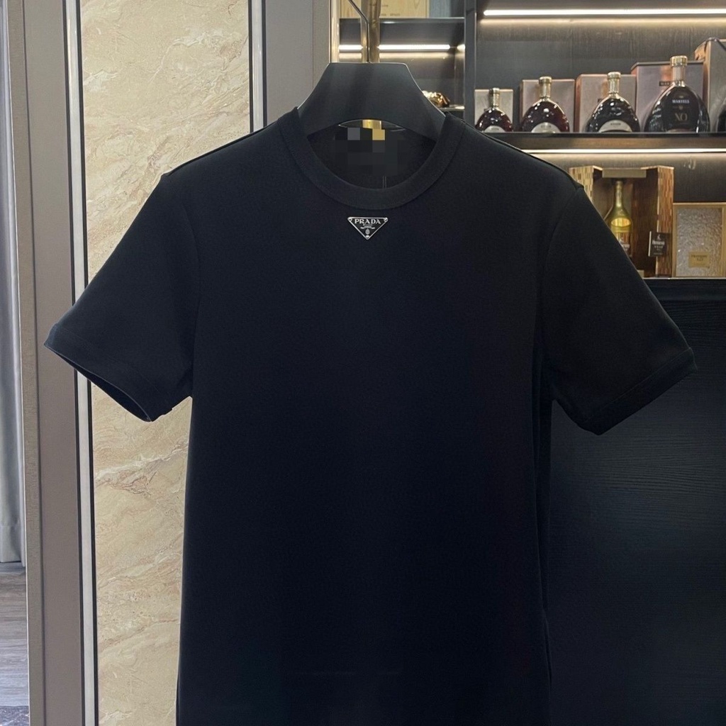 Prada2023 nova marca da moda moda simples clássico triângulo metal crachá nova camiseta de manga curta versátil