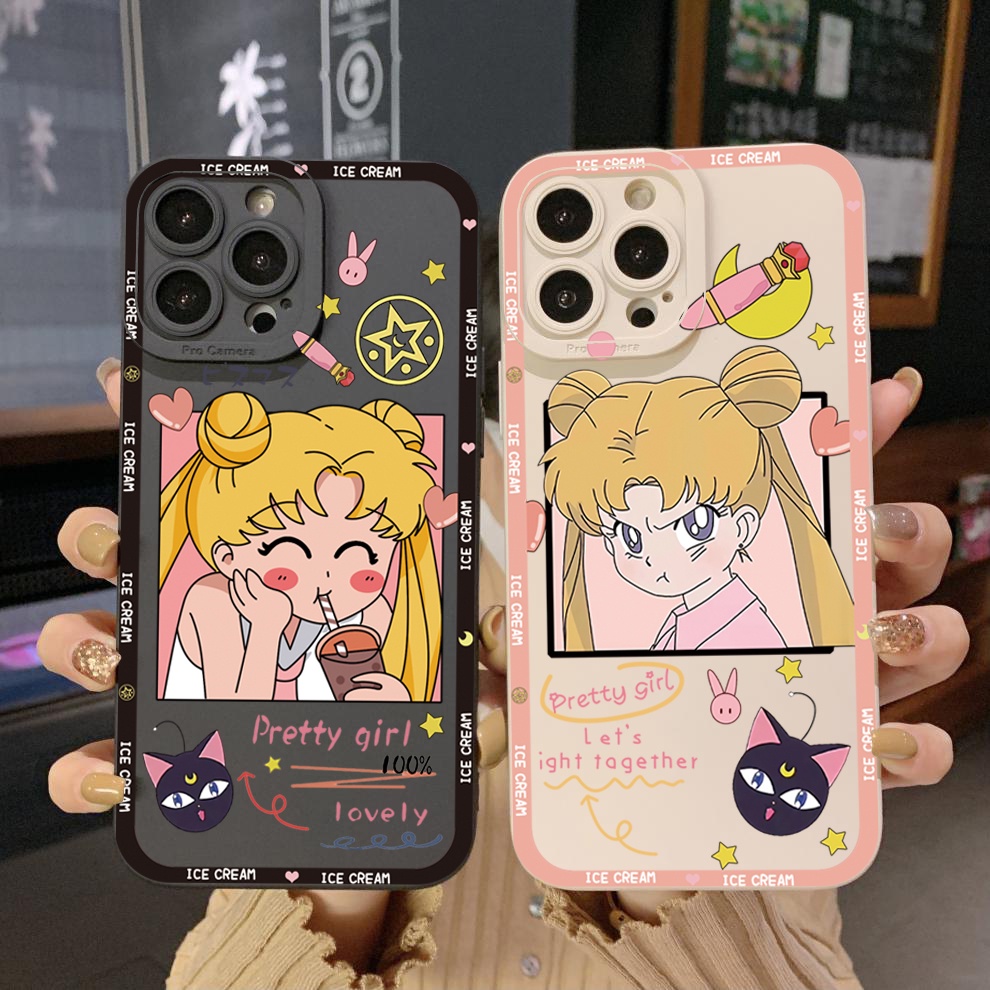 Sailor Moon Capa De Silicone Para iPhone 13 Pro Max 12 14 Plus 11 8 7 XR SE 2022 Quadrinhos Sakura Capinha De Celular