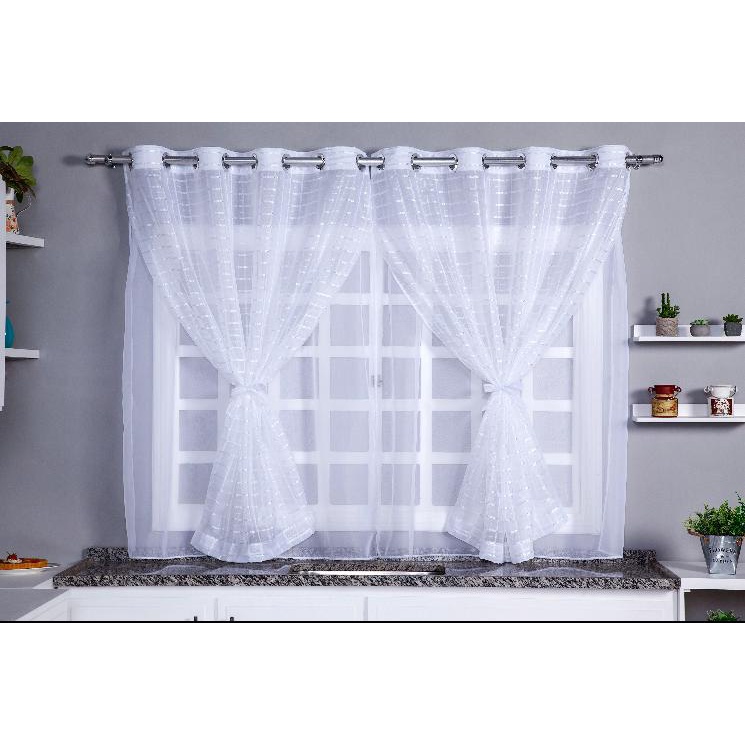 Cortina Voil Duplo Quarto Sala Cozinha + Laço Amarril Brinde