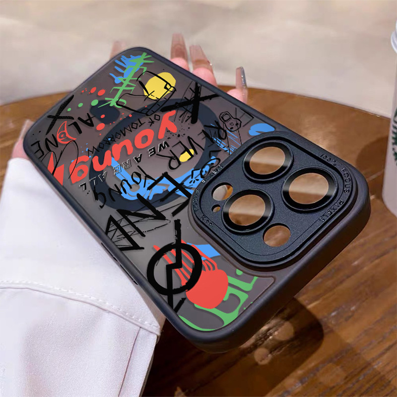 Capa Magnética Magsafe Resistente A Choques de Letras engraçado de graffiti Para iPhone 16 15 14 13 12 11 Pro Max case