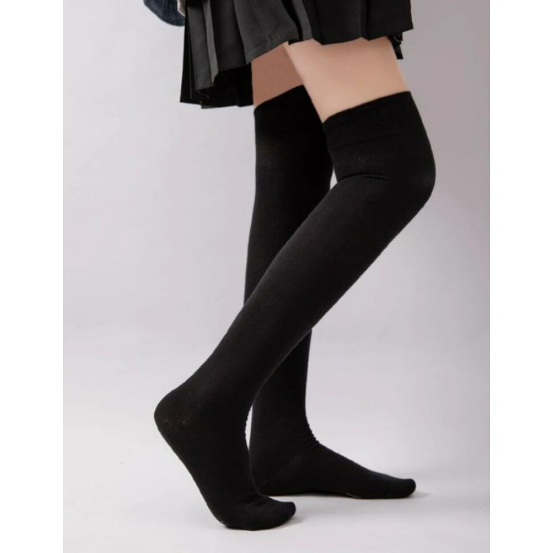 1 Par Meia 7/8 Cano Alto 75 CM Adulto N 35 a 42 Preta Feminina Masculino casual frio outono inverno