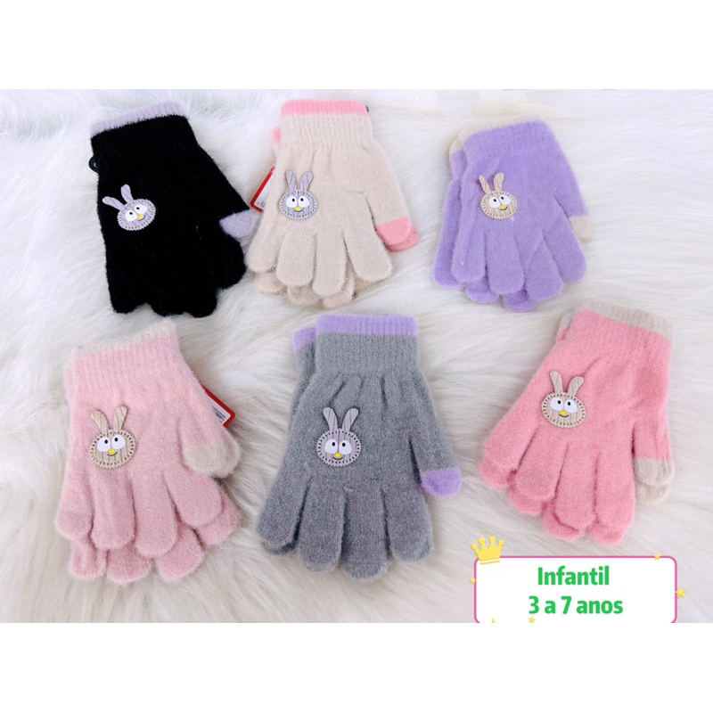 Luva infantil 3 ao 7 anos Lã Termico peludinho Coelho Inverno Quente Menina Menino Frio