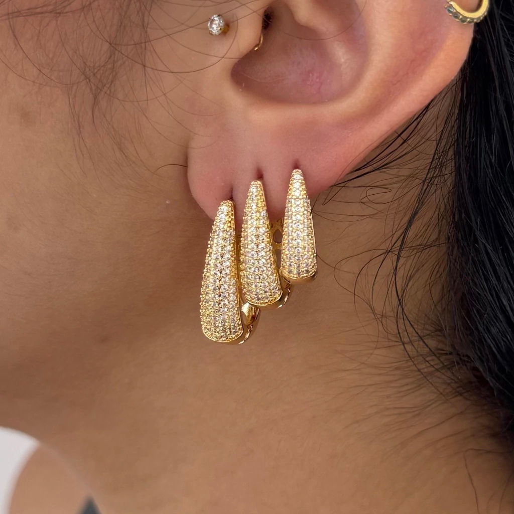 Kit 3 Pares brincos de luxo para mulher incrustados com zircónias banhados a prata 925 ou ouro 18K
