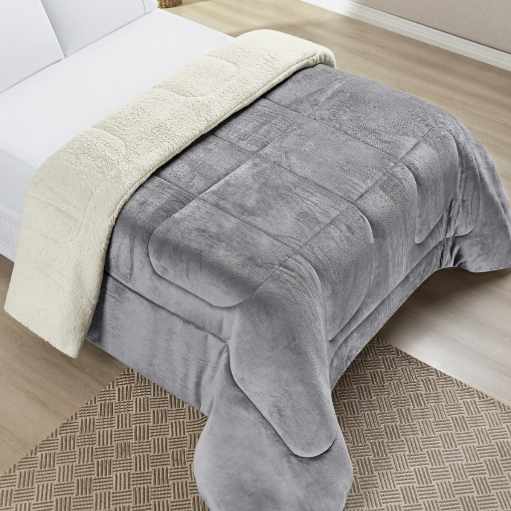 Coberdrom Edredom Dupla Face Sherpa Pele De Carneiro Casal King Manta Felpuda Cobertor