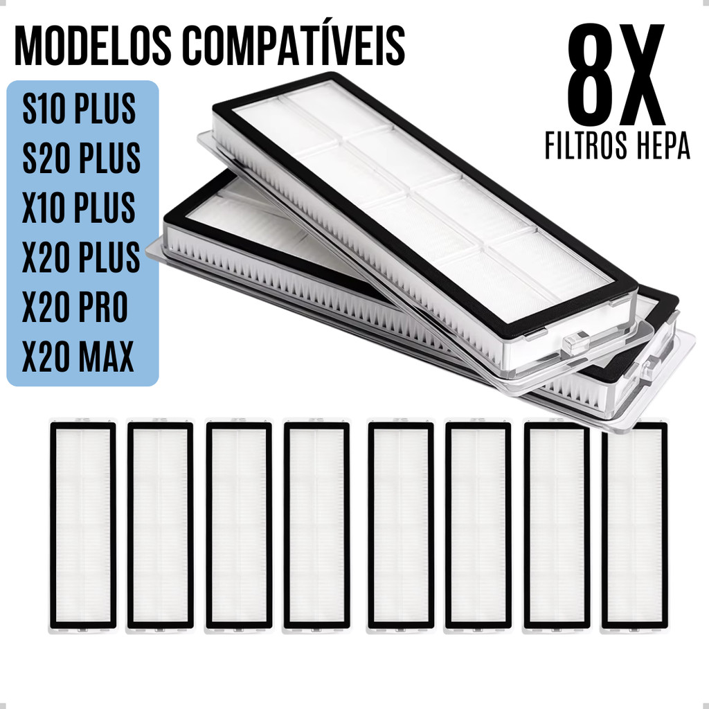 Kit 8, 4 e 2 Filtros Hepa Para Robo Aspirador Xioami X20 Pro X20 Max X10+ X20 Plus S10 Plus S20 Plus