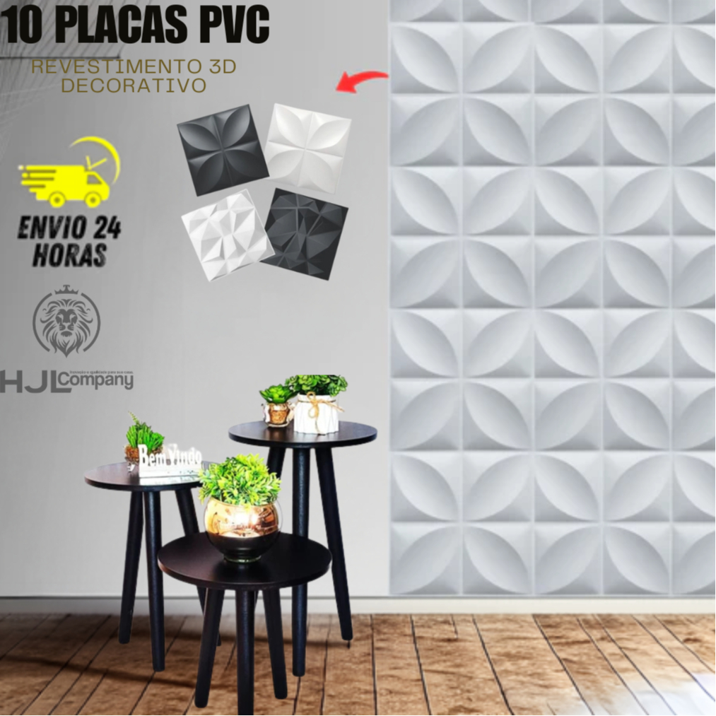 Kit C/ Até 100 UN Placas Revestimento PVC 3D Preto e Branco De Parede Decorativa 25x25cm Vários Kits