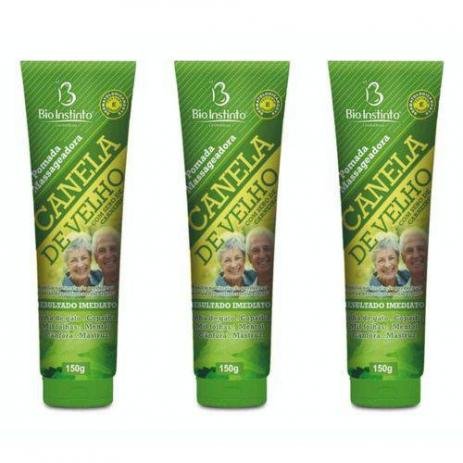 Kit com 3 Pomada Massageadora Canela de Velho com Sebo de Carneiro 150g Cada