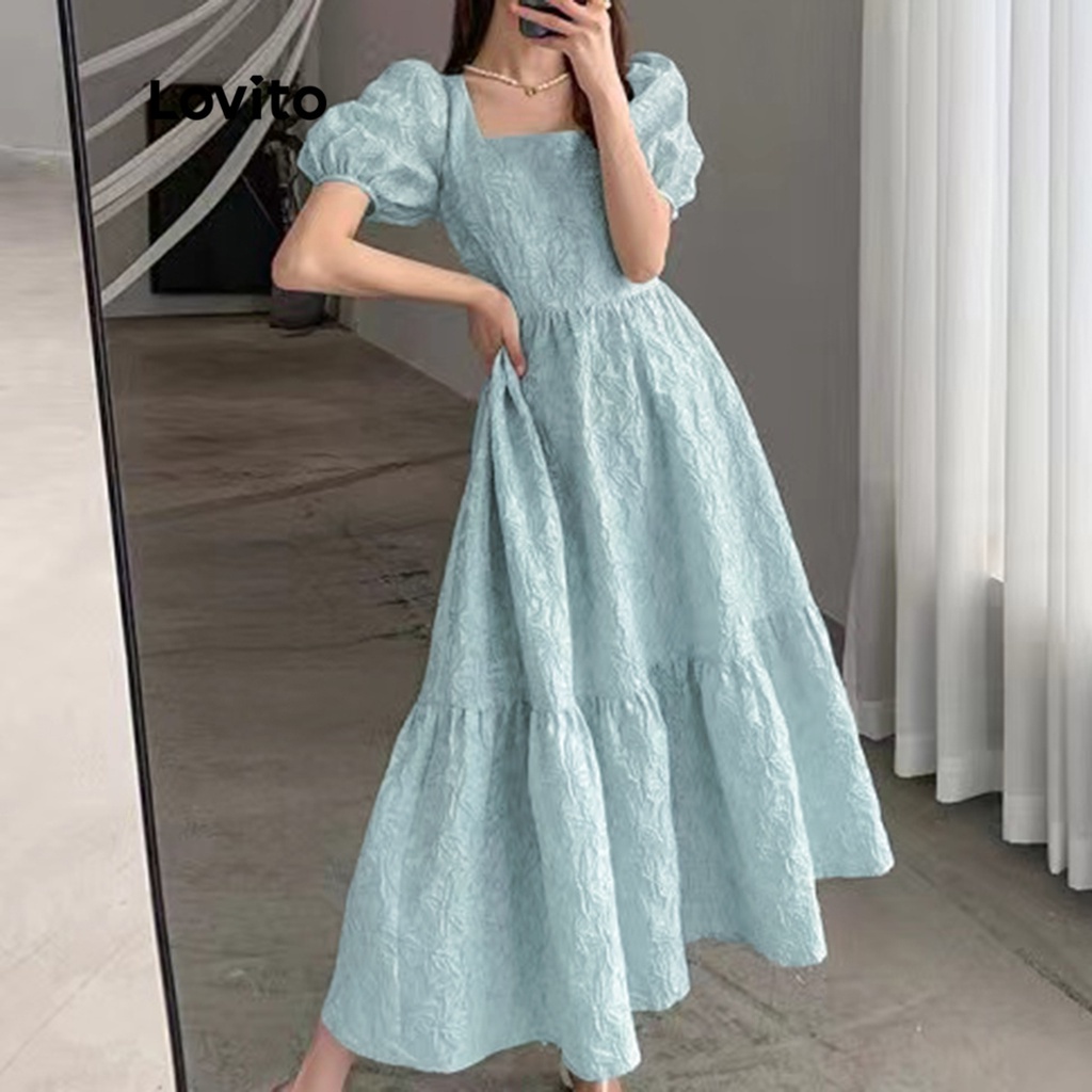 Lovito Vestido Feminino Boho Com Estrutura Floral E Mangas Bufantes LBL07197